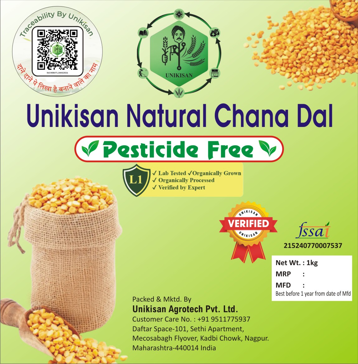 - Product Name: Unikisan Natural Chana Dal L1
